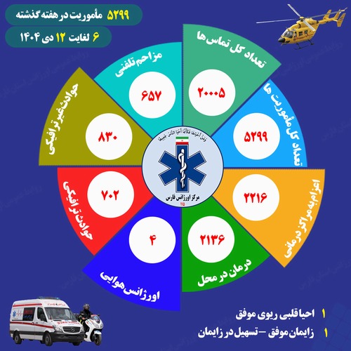 اقدامات اورژانس پیش بیمارستانی فارس طی بازه زمانی 6 تا 12 دی؛