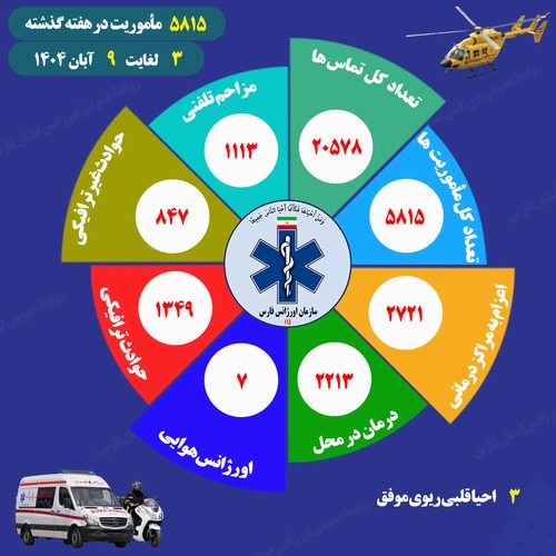 عملکرد اورژانس پیش‌ بیمارستانی فارس طی بازه زمانی 3 تا 9 آبان 1404